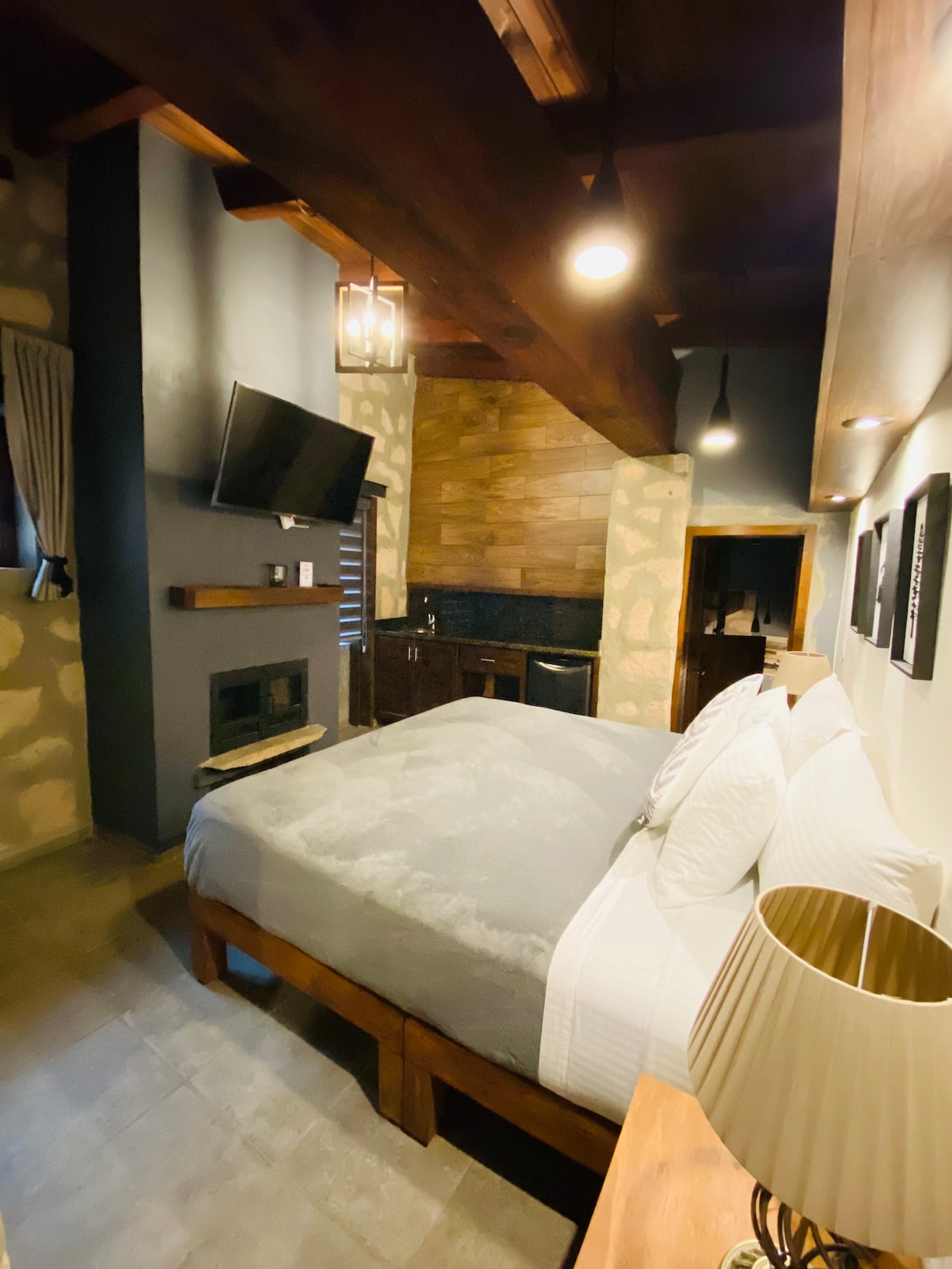Relájate en este espacio tan tranquilo y elegante, Disfruta del encantador entorno de esta romántica Cabaña Prieta. Se encuentra ubicado a 5 km de la plaza principal, esta rodeada de enormes pinos, cuenta con acabados de lujo, Cocina equipada, Jacuzzi, Terraza con vista Panoramica, TV con sistema Dish. Todo lo necesario para que pases un agradable noche con tu pareja en la naturaleza.