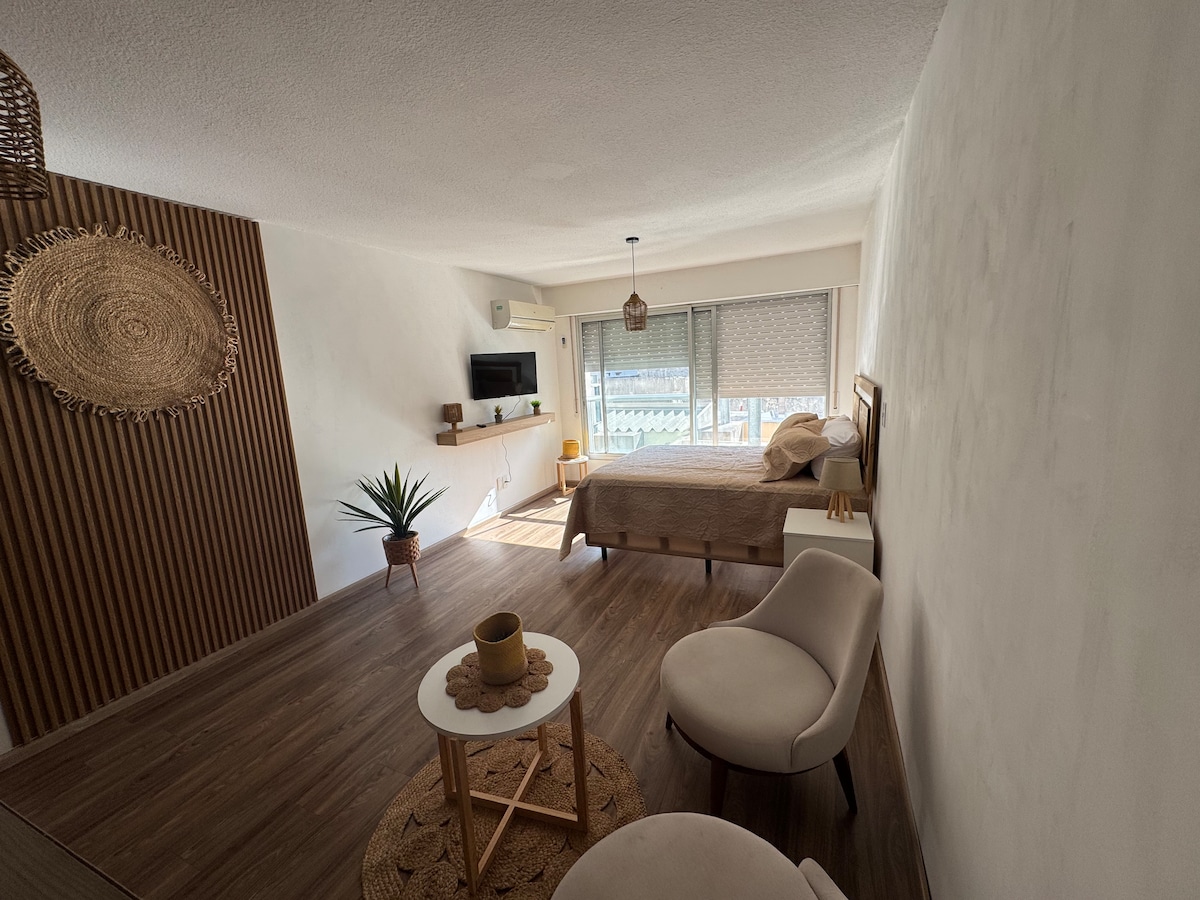 Apto 1 dorm, baño cocina estar (con sillón, Tv, mesa ratona y otra para distinto uso, trabajo etc). El espacio cuenta con aire acond en dormitorio placares y salida a terraza para disfrutar la hermosa vista a la mejor playa de Malvín. Ideal para turistas, y/o personas que buscan un lugar de descanso o trabajo. Lugar que cuenta con todo lo necesario para llegar y disfrutar estadía en mejor zona de Malvín. Cercano a paradas de bus, bares restaurantes cafeterias supermercado heladerías etc