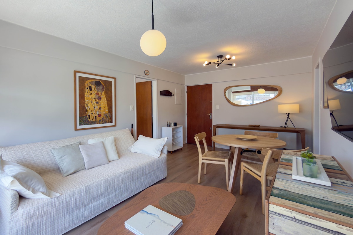 Departamento cómodo y luminoso a pasos del centro y la rambla. Ideal para disfrutar actividades al aire libre, buena gastronomía y fácil acceso al transporte. Totalmente equipado: vajilla, ropa de cama, toallas, Wi-Fi. Ubicado en tercer piso con ascensor y vigilancia en el edificio y su entorno.