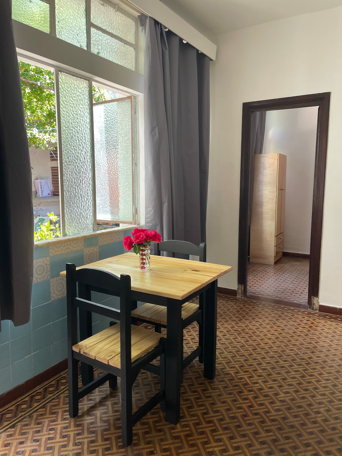 Apto privado al fondo con entrada independiente a pasos del nuevo centro shopping, un buen punto para conectar con toda la ciudad. Está en el fondo compartido con mi casa, donde habita nuestra perra, Clara (una adorable Golden). En el entrepiso está el dormitorio con un sommier de 2 plazas y tv smart 32. Abajo se encuentra la sala con ventanales hacia el fondo y un baño completo. Hay una barbacoa techada contigua que se puede utilizar, con la opción de un área para cocinar.
