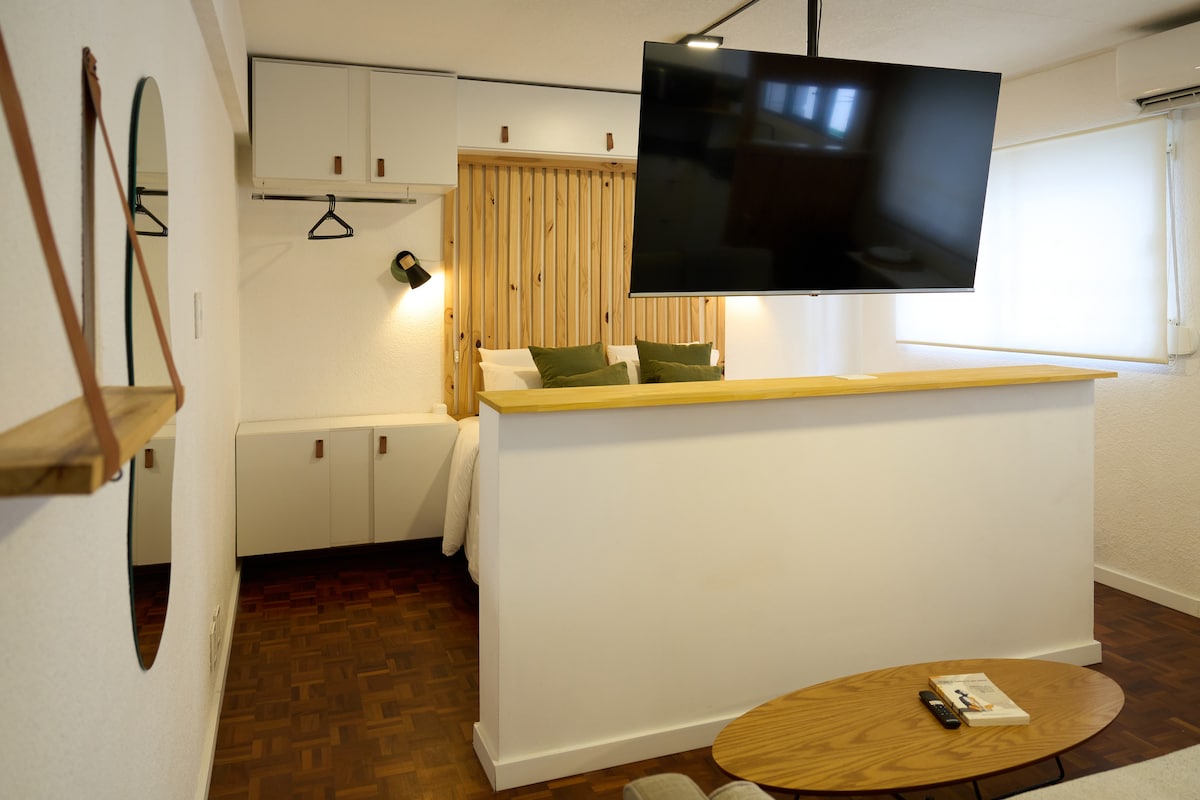 Amplio Studio tipo Loft en el corazón de Pocitos, diseñado para ofrecerte una estadía cómoda y práctica. El espacio cuenta con una cocina-comedor totalmente equipada, living con cómodo sofá, Smart TV y aire acondicionado. El área de dormitorio ofrece un sommier matrimonial de alta calidad y espacio de guardado. Todo está pensado para que disfrutes de tu estadía con total confort.