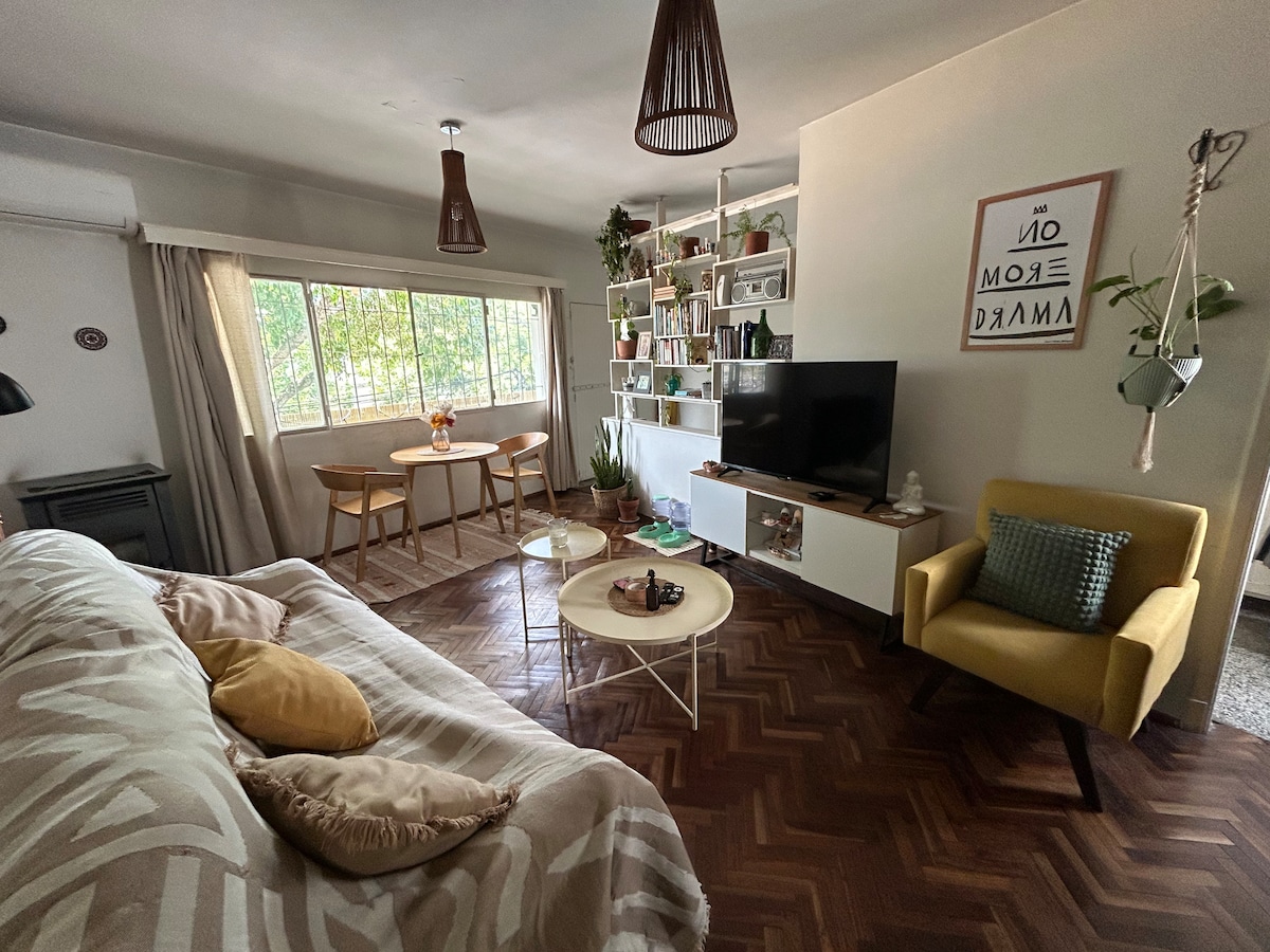 Bright house in quiet street of Pocitos. Air conditioning (hot / cold) in bedrooms and living 10 min. walk to the beach, 5 min. of Parque Rodó. Fully renovated, equipped with everything you need for a comfortable stay (laundry included) Admits 2 extra guests using double sofa bed American system, in separate hall, which provides privacy during the night. Baby cradle without charge. Change of bed linen and towels, for stays exceeding 7 nights. Garden & Own parking