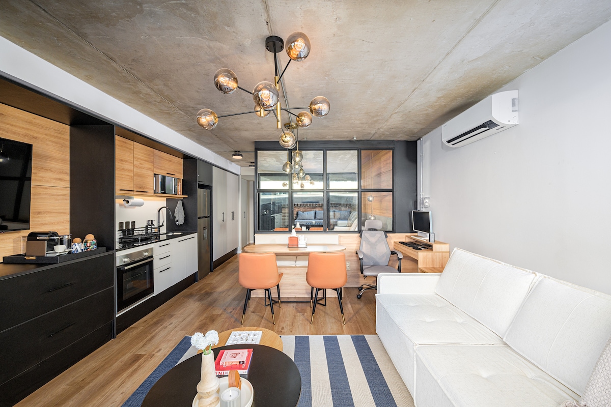 Sunny Studio on the best location in the Historic District. Completely recycled in a house of the nineteenth century. Steps away from museums and tourist attractions as well as the famous Mercado del Puerto and the port terminal that connects with Buenos Aires. With everything you need for a comfortable and enjoyable stay. Very spacious and sunny with roof-to-floor windows leading onto a pedestrian street. The building has access to the rooftop with barbecue where you can cook your own "asado"