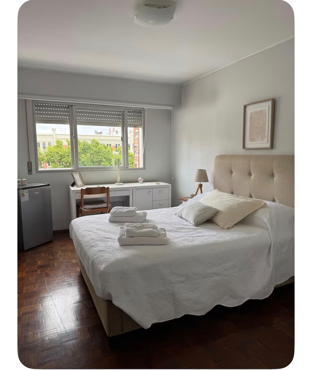 En pleno Parque Rodó a 200 m del parque y de la playa, a menos de 10 minutos del centro. Independiente, planta baja, al frente. Acceso: 1 habitación que funciona como estar, comedor y lugar de trabajo; más 1 dormitorio espacioso con amplia ventana, aire acondicionado; baño. Wifi ágil. Estarás muy cómodo/a. El espacio es para una o dos personas adultas. Lee la descripción y observa las fotos. La mejor relación entre el precio y las comodidades de que dispones. Lo podrás comprobar!