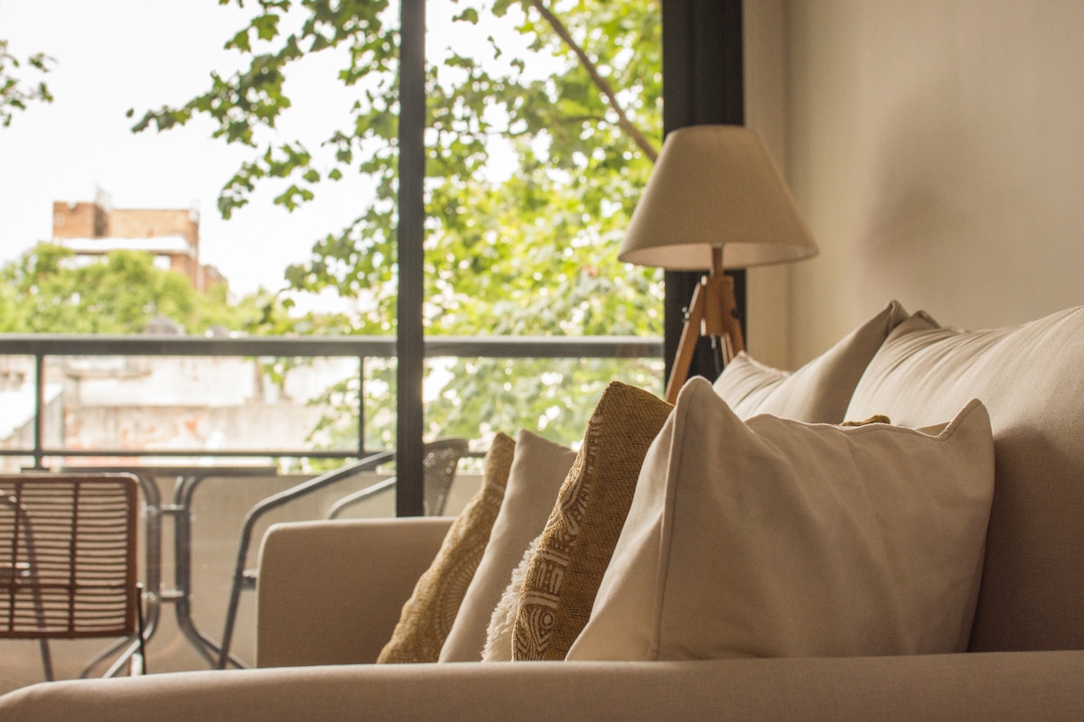 Modern 1-bedroom apartment in Parque Rodó. Bright and quiet, with large double-glass windows. Fully equipped kitchen with fridge, oven, microwave, utensils and tableware. Open living-dining area with 43" Smart TV and a home office space with Wi-Fi. Bedroom with queen bed and balcony access, plus a full bathroom. Excellent location: steps from Parque Rodó and the Rambla, surrounded by cafés, shops, and public transport at the door.