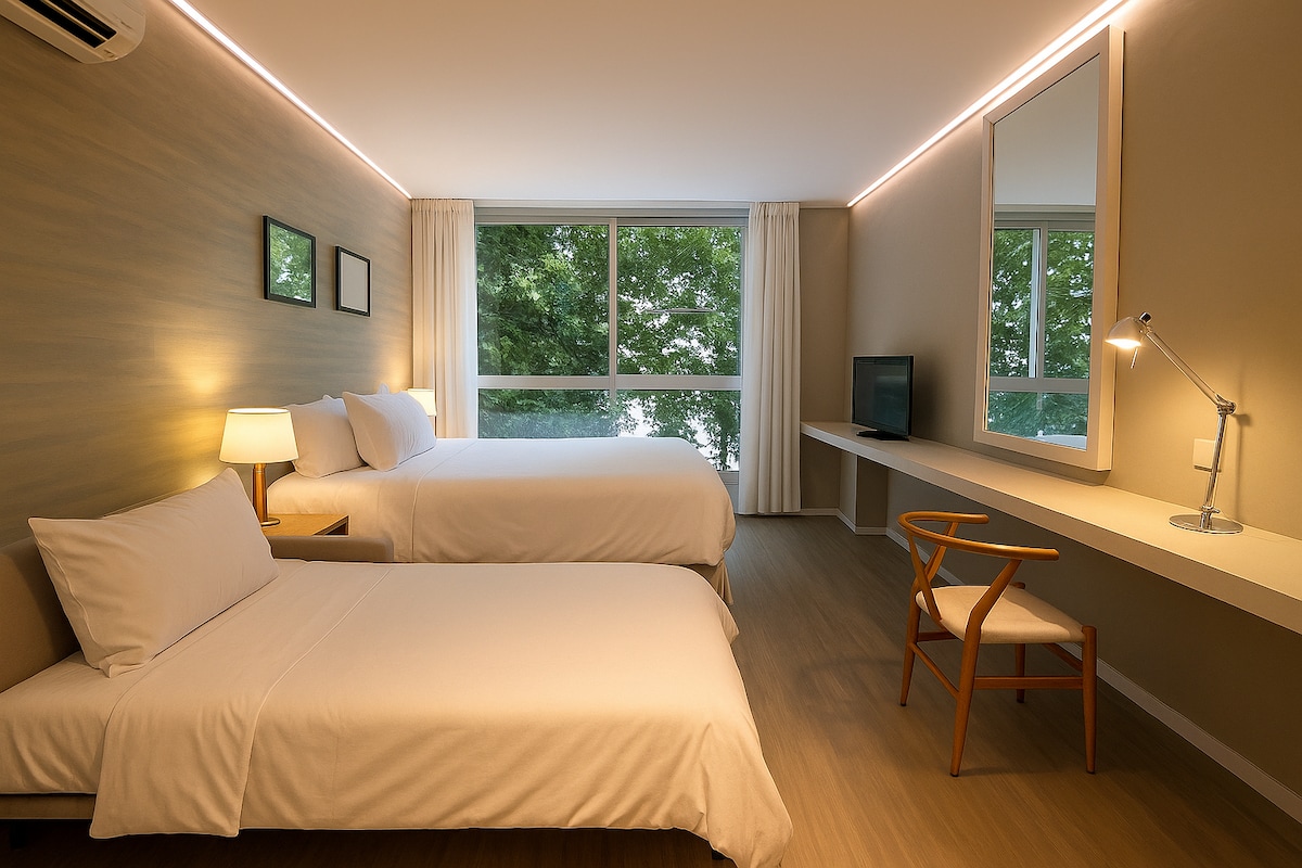 🌅 Balcony with Scenic Views | 🅿️ Private garage | 🛏️ Queen bed | 🍳 Fully equipped kitchen | 🚿 Modern bathroom 📶 Fast Wi‑Fi | ❄️ Air conditioning | 🐾 Pet Friendly 🏋️♂️ Gym | 🧖♂️ Sauna | 🏊♀️ 3 heated swimming pools 🛡️ 24/7 security | 🛗 Elevator 📍 Prime location in Puerto de Buceo, just steps from the Rambla, restaurants, and Montevideo’s most charming waterfront views. Perfect for a comfortable and relaxing stay.