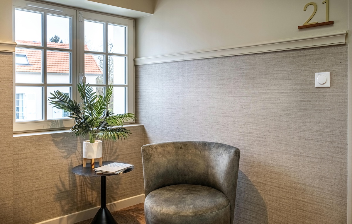 Thoughtfully designed to provide optimal comfort and accessibility, this peaceful cocoon is tailored to meet the needs of our guests with reduced mobility. With 21m² of space, the room features a fully accessible bathroom equipped with Japanese-style toilets, a walk-in shower with a support bar, a smart mirror, and a Queen-size Hypnove memory foam bed (160x200, tested by the Sleep and Alertness Center – guaranteed to enhance sleep quality).