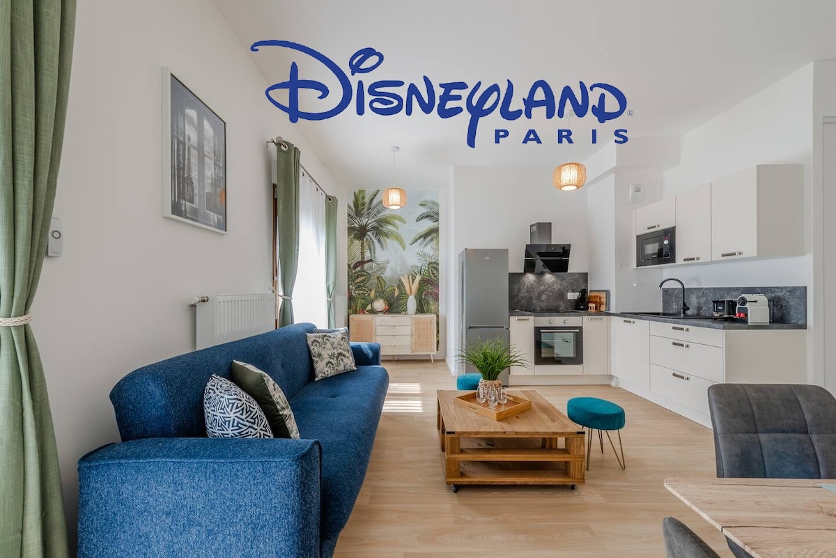 Logement neuf à 2 pas du parc disneyland Paris! Vivez dans un quartier de style neo artdeco, tout commerces accessibles a pied, au coeur du val d'europe, un gain de temps précieux pour profiter au maximum de votre sejour. Nous privilégions votre confort et bien être avec une literie haut de gamme et couleurs douces. Disney, village nature, vallée village, balade en nature, vivez localement pour une expérience unique. Le petit plus, assistez au spectacle de drones depuis la terrasse:-)