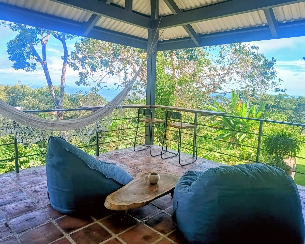Perched atop a hill with expansive horizons, a beautiful sunrise is the alarm clock every morning in this studio apartment. With views of the ocean, canyon, mountains, and all of the wildlife that resides in the trees, this house is made for those who enjoy drinking their coffee or tea early in the morning, while listening to the forest come alive with sounds of howler monkeys, songbirds and insects as nature awakens to greet the sun.