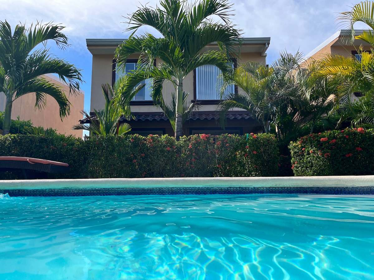 Modern Home in FAMILY FRIENDLY, SAFE & SECURE,24/7 GATED BEACHFRONT COMMUNITY (LOS DELFINES GOLF & COUNTRY CLUB)🏄🏼♂️🌈🌴 IN TAMBOR ( all within minutes to 7 more local beach locations) 🏡 PRIVATE BACKYARD, COVERED PATIO, PRIVATE POOL & OUTDOOR Lounge FURNITURE 🏄🏼♂️5 MINUTES WALK TO our PRIVATE 11KM BEACH⛱ ✅GROCERY/ LIQUOR STORE ✅GOLF CLUB HOUSE & RENTALS ✅ BEACH RESTAURANT ✅ PLAYGROUND ✅SLEEPS Up to 7 GUESTS ✅KING, QUEEN, DOUBLE BED BUNK BEDS ✅ 3 SMART TVS & A/C&100 MBPS / FIBER OPTIC INTERNET