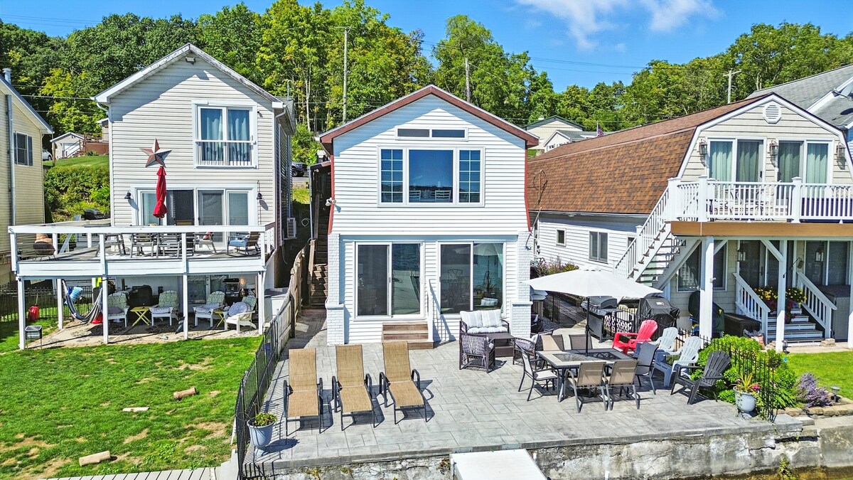A true refuge... peaceful, quiet and majestic. The house is right on the lake with gorgeous views of Seneca lake. Large windows overlook the lake from the living room and front bedroom. Single family detached home situated on a dead-end street limited to local traffic, this 2 bedroom, 1 1/2 bathroom year-round home will provide you with everything you need for your next getaway. The house is perfect for 2 couples or a family of four. Bonus room above the boathouse with a pull out sofa.