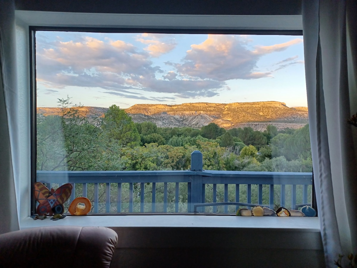 There is something wild about this place and yet so serene. This is where Zane Gray, Tony Hillerman, may have written one of their books in the unique southwest. Vincent Van Gough may have chosen to paint the starry night and the cliffs in 7 different shades here if he had lived in America. Sunrises & sunsets from every place - the balcony, living room, bedroom, and bathroom will take your breath away! (This is only upstairs with your own balcony. Casita is another unit downstairs for others).