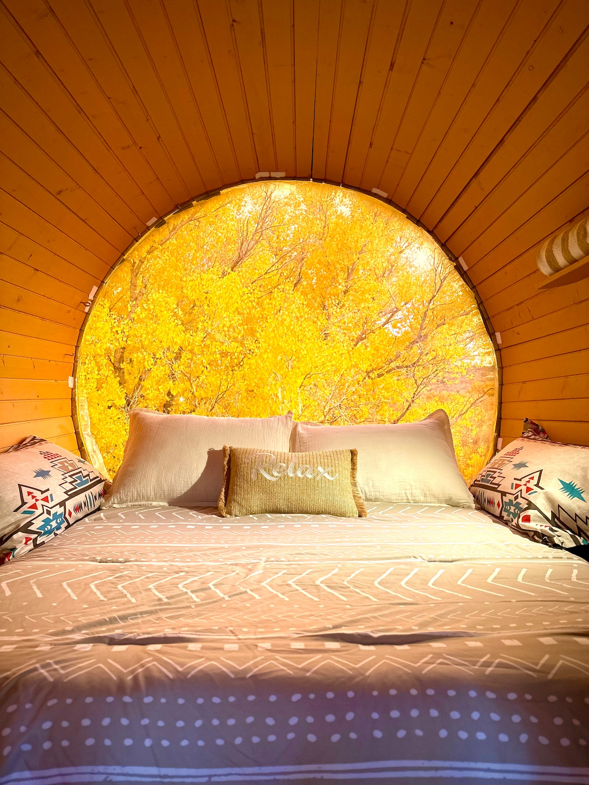 [Mandatory liability waiver signing upon arrival.] This 8-acre haven is not suitable for children under 18 due to the natural terrain, river access, and steep cliffs. NO DOGS (ADA only) Eagle Eye is a cedar sauna converted into a suite, perched atop a limestone cliff overlooking the enchanting creek, offering a unique and immersive experience like no other. With its concave window framing sunrise vistas, guests are treated to a cozy front-row seat to nature's spectacle.. Eagle Eye. 🦅👁️