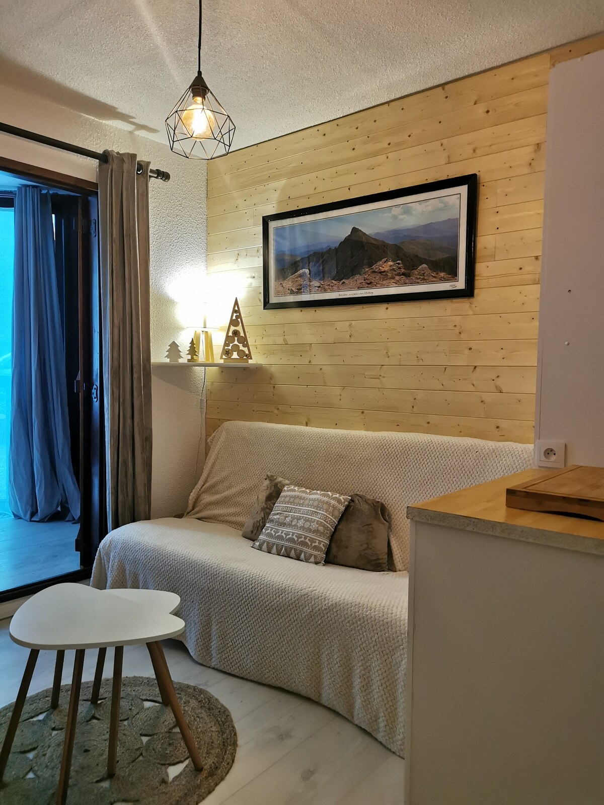 Cet agréable cocon de 27 m2 propose tout le confort nécessaire à un séjour détente. Il se compose de : - 2 couchages en 140 : 1 lit neuf et 1 clic clac neuf. - 1 kitchenette toute équipée (gaufrier, appareil à fondue, raclette, cafetière tassimo, presse-agrumes, grille pain) - 1 espace douche (sèche cheveux, lisseur) - 1 espace TV (wifi, Netflix, Prime…) - 1 balcon dédié à l’entretien du matériel (table fartage) Le linge n’est inclus que dans la prestation ménage à 60€ par séjour. NON FUMEUR