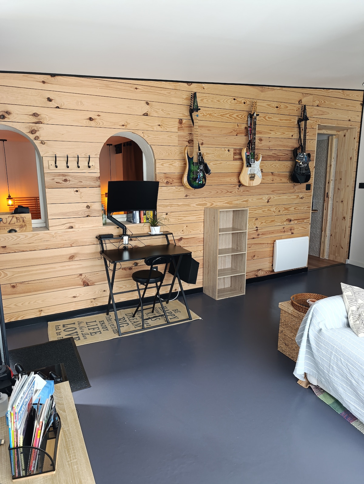 Studio indépendant et chaleureux aux abords du petit village de Ganac. De plain-pied et décoré avec soin, il dispose de tout le confort nécessaire pour un séjour ressourçant dans un écrin de verdure. Au pied des chemins de randonnées, il se situe à 5 min seulement du centre historique et des commodités de la ville de Foix. Parking sécurisé, espace extérieur avec vue sur la nature ! Nous proposons également un service de location de vélos à assistance électrique et de raquettes à neige sur place.
