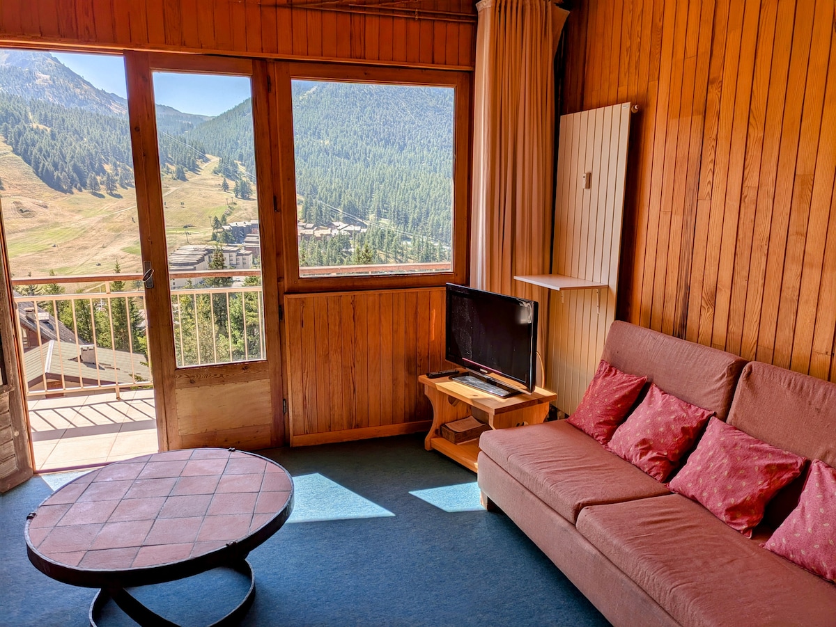 Grand appartement duplex 72 m², 3 chambres, 8 personnes. Idéal famille nombreuse ou 2 familles. A 550 mètres à pied du front de neige. Navette gratuite au pied de l'immeuble en hiver. Retour à ski possible. Départs de chemins de promenade à proximité de l'immeuble. Très belle vue plein sud, sans vis-à-vis. Très ensoleillé. Très calme. Appartement ancien, comme en attestent les photos, mais spacieux et fonctionnel. 3ème étage (dernier étage) sans ascenseur. Connexion fibre optique.
