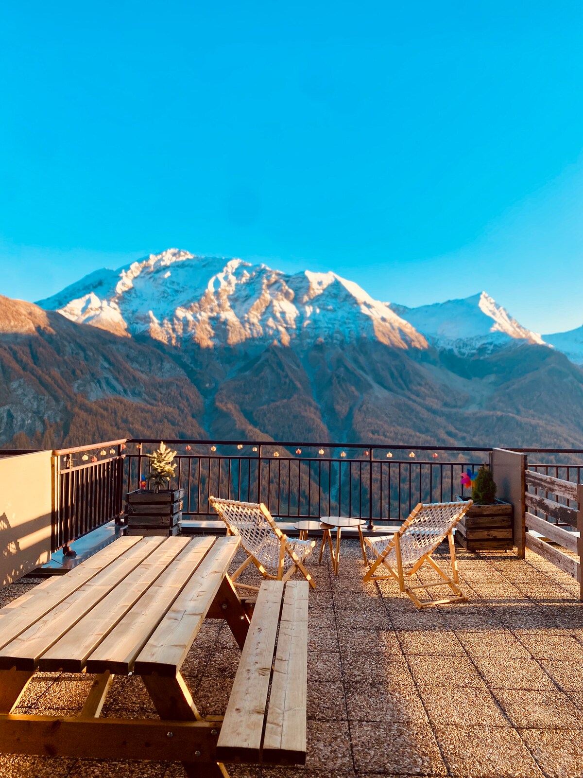 Notre appartement « le nid d’aigle » a été entièrement rénové Literie neuve Ce charmant appartement est situé au dernier étage d’une petite résidence de 10 logements avec une architecture typique des Alpes franco italiennes Une terrasse permet de profiter de l’espace extérieur et d’une vue dégagée sans vis à vis sur les montagnes Le local à ski privatif est mis à disposition Garage fermé disponible avec recharge pour véhicule électrique et hybride