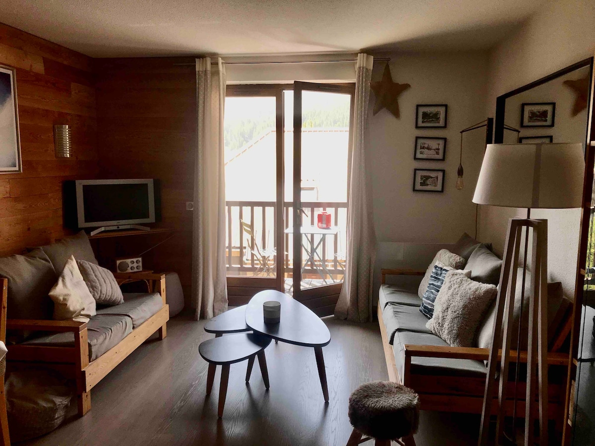 温馨的公寓,位于滑雪道和村庄之间。