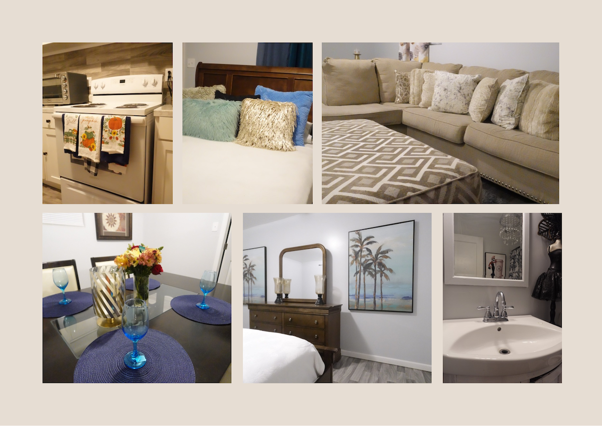 Stay in our comfy 2bed room *Self check in *Fast WiFi *Perfect for longer stays *Professional Cleaned & Sanitized *Fully Stocked & Equipped Kitchen *Netflix *Washer & Dryer *5mins to Downtown *10mins to Airport *3mins to I65 *5mins to I85 *Outside patio *Smart Tv’s in every room *Parking on premises *Quiet Neighborhood 3 Outside motion security cameras are on this property (front door, side door, back door and parking area). Cameras records when motion is detected. No cameras inside property
