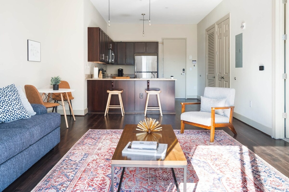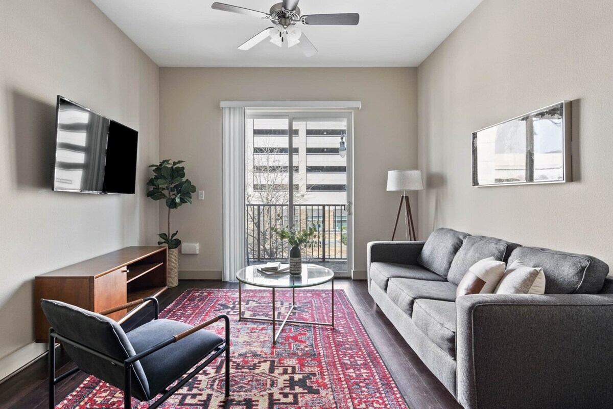 Designed for professionals and modern travelers, this luxury 1-bedroom apartment offers the perfect downtown Montgomery stay. Located across from the Renaissance Conference Center and Performing Arts Center, it features granite countertops, stainless steel appliances, smart TVs, and a private balcony with city views. Step out to enjoy local dining and nightlife, then return to secure gated parking for a relaxing, convenient stay in the heart of the city!