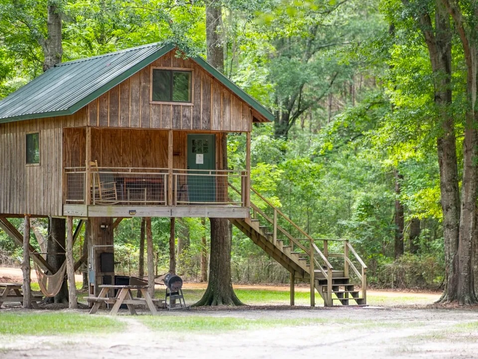 Escape to the trees and experience glamping at its finest. Nestled in the peaceful countryside of Central Alabama, this unique, air-conditioned treehouse offers the perfect blend of nature and comfort—similar to the elevated retreats you’d see on Treehouse Masters. Whether you’re looking for a peaceful getaway, a family adventure, or a one-of-a-kind stay in the trees, this treehouse delivers a truly memorable experience.