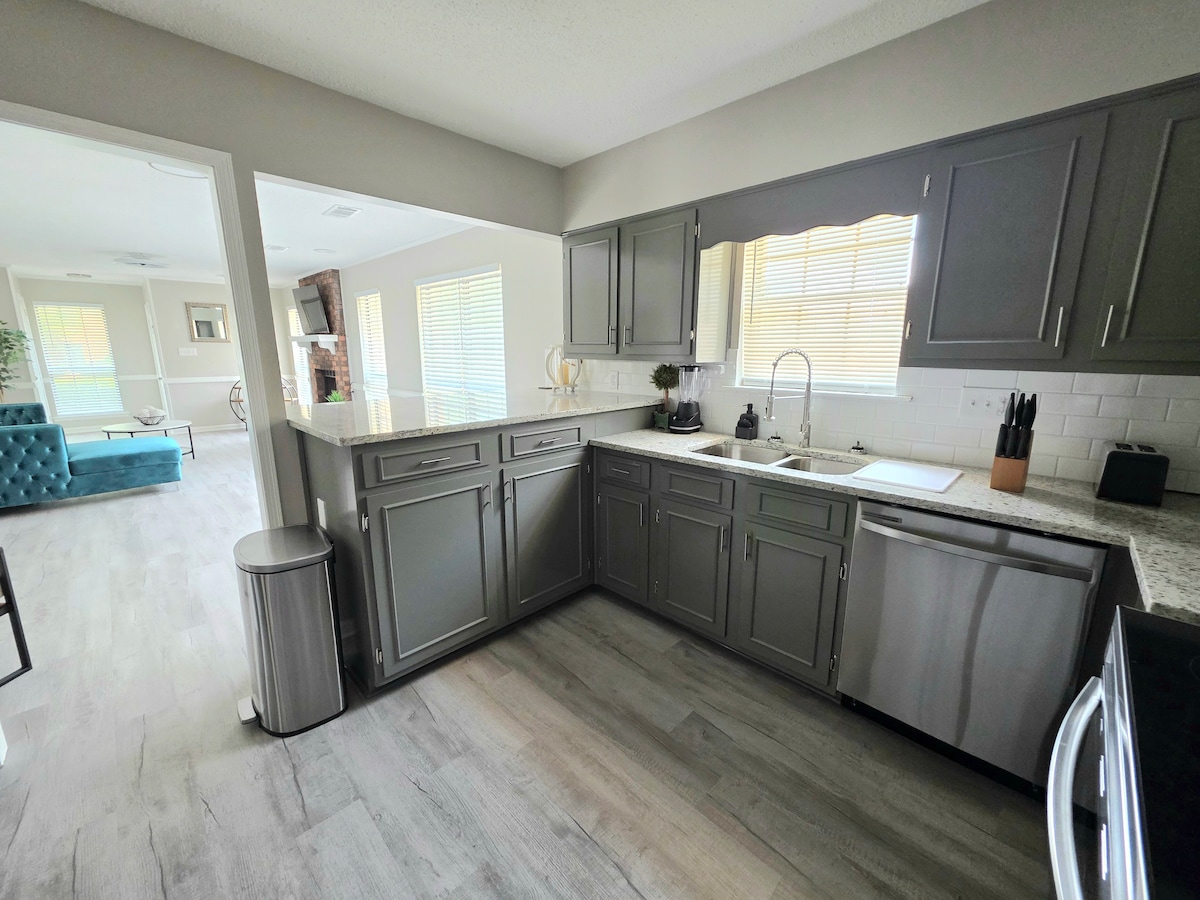 Modern 1BD Townhouse ideal for parties of two just 10 minutes from downtown. Nestled in a quiet street just a 10-minute walk to a shopping center with the full variety of restaurants and a Publix and Starbucks. Enjoy the spacious living room with a 55" Samsung TV mounted above the fireplace for Netflix or Youtube TV, a large kitchen with stainless steel appliances, a soothing King-Sized Nectar mattress in the bedroom, and a his-and-hers vanity and high-pressure walk-in shower in the bathroom.