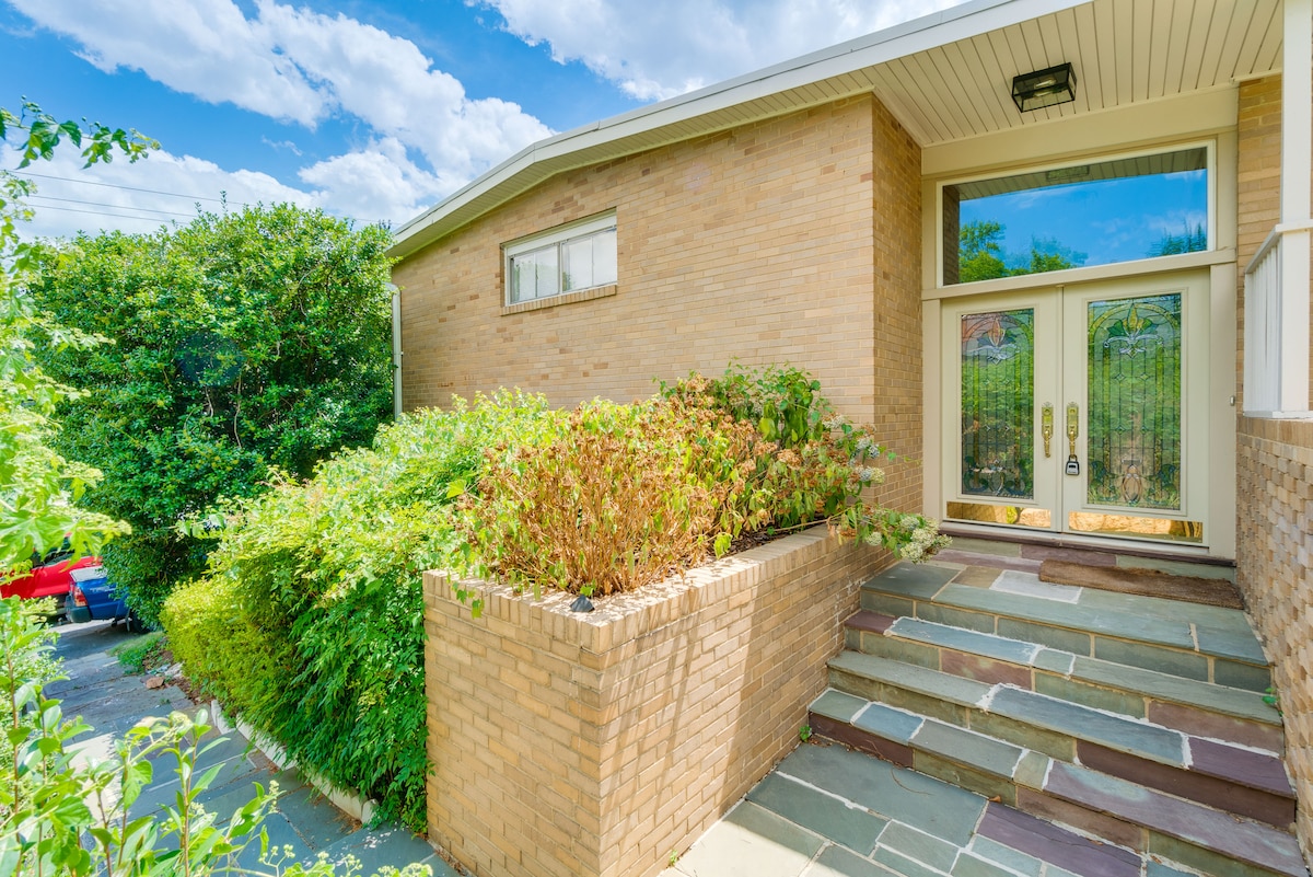 Welcome to our stylish basement apartment, perfect for modern travelers. Whether you're here for work or leisure, this space has you covered. Situated minutes from the Metro, Airport, and major work centers. The apartment features a desk with dual monitors, keyboard, mouse, and 1GB internet. At night, relax in the plush king-size bed. A convertible futon couch with a 65-inch TV, awaits your binge-watching sessions. A washer/dryer and full kitchen, w/refrigerator and stove complete the space.