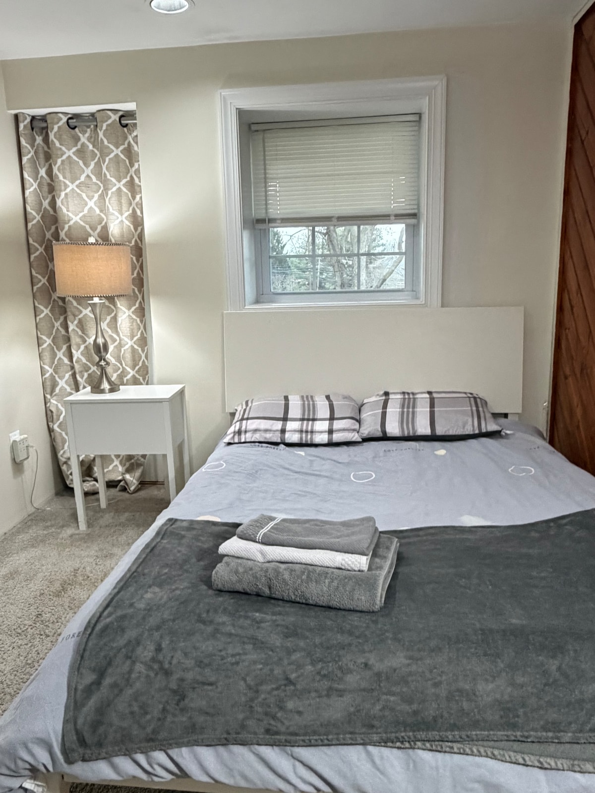 Enjoy this private and sunny basement apartment and garden patio- a great home base after being out during the day. Located close to I-270, two hospitals, AstraZeneca, NIST, retail areas such as RIO, outlets, Bethesda, and in walking distance to a lake at Great Seneca Park State Park. The DC Metro train is 15 minutes away. The studio (1 queen bed) comes equipped to comfortably host a couple sightseeing or a traveling professional. Please read FULL description before booking.