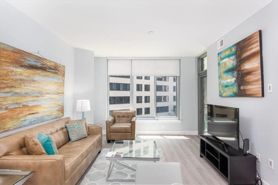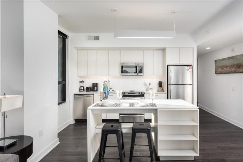 This apartment is located in the upscale hub of Rio in Gaithersburg, just 30 minutes outside of DC. The place embodies luxury style elements and sits on the top floor. Large windows in every room capture breathtaking views and allow a plethora of natural light. All building amenities are available to you, from an onsite gym to a seasonal pool to a Billiards table. Our abode sits steps away from regarded restaurants, shopping, Starbucks, and much more! It simply doesn't get any better!