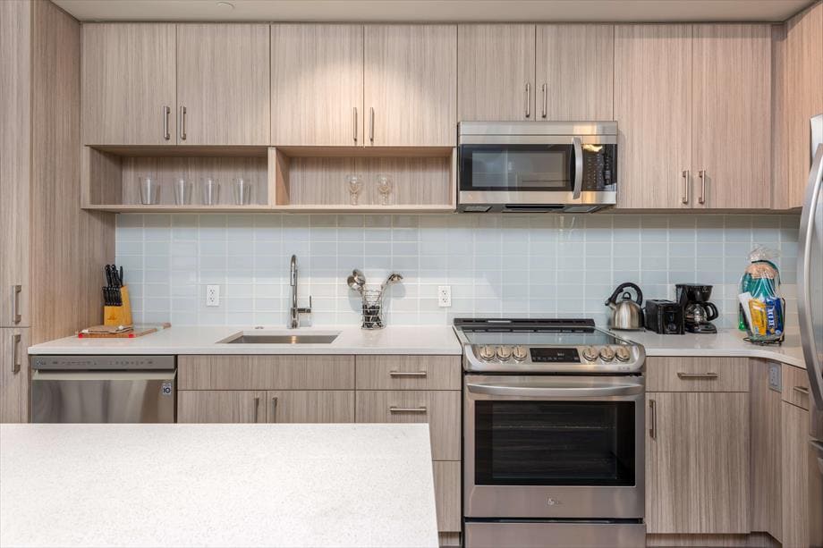 In the heart of Bethesda’s walkable Downtown neighborhood, this new high-rise offers luxurious amenities and a sunny, modern living space. It’s perfect for business or leisure stays. Highlights include: • Gorgeous chef’s kitchen with stainless steel appliances and stone countertops • Outdoor jetted pool and sun deck with BBQ grill stations, reminiscent of a luxury resort • Ideal location within walking distance of the Bethesda Metro Station (Red Line) and quick access to I-270 and the Beltway