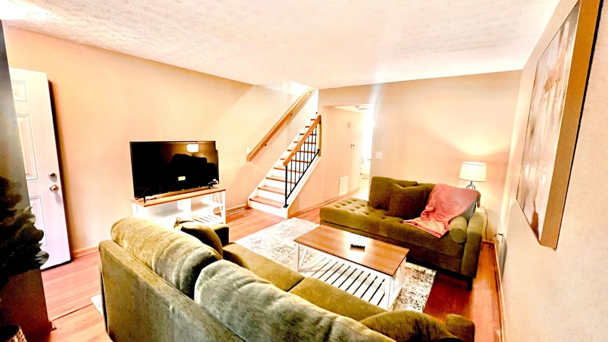 Unwind in this great modern space with excellent proximity to everything the Greater Dayton Area has to offer. Directly across the street is a large park with Pickleball, a Playground, Soccer fields, and greenery. The space features a 'Fancy Massage Chair', Keypad Automated Check-In, King Beds, an Open Style layout, a working area with External Monitor, 55" Smart TV, Onkyo Sound System, a fully furnished Kitchen, TWO spacious vanities, a coffee table in the shape of a Bear, and more!