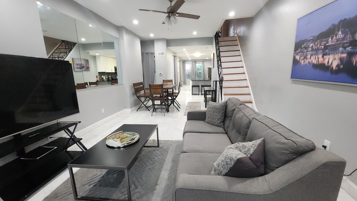 Treat yourself to a luxurious city escape in this spacious 5-bedroom, 3.5-bath, 2,500+ sqft, three-story townhome in the heart of Philadelphia! Perfectly designed for relaxation and entertainment, it features an 80-inch TV for movie nights and a fully equipped kitchen with modern stainless steel appliances. Ideally located, you’re just steps from iconic landmarks like the Liberty Bell, Franklin Square, and Temple University — with the added convenience of free parking!