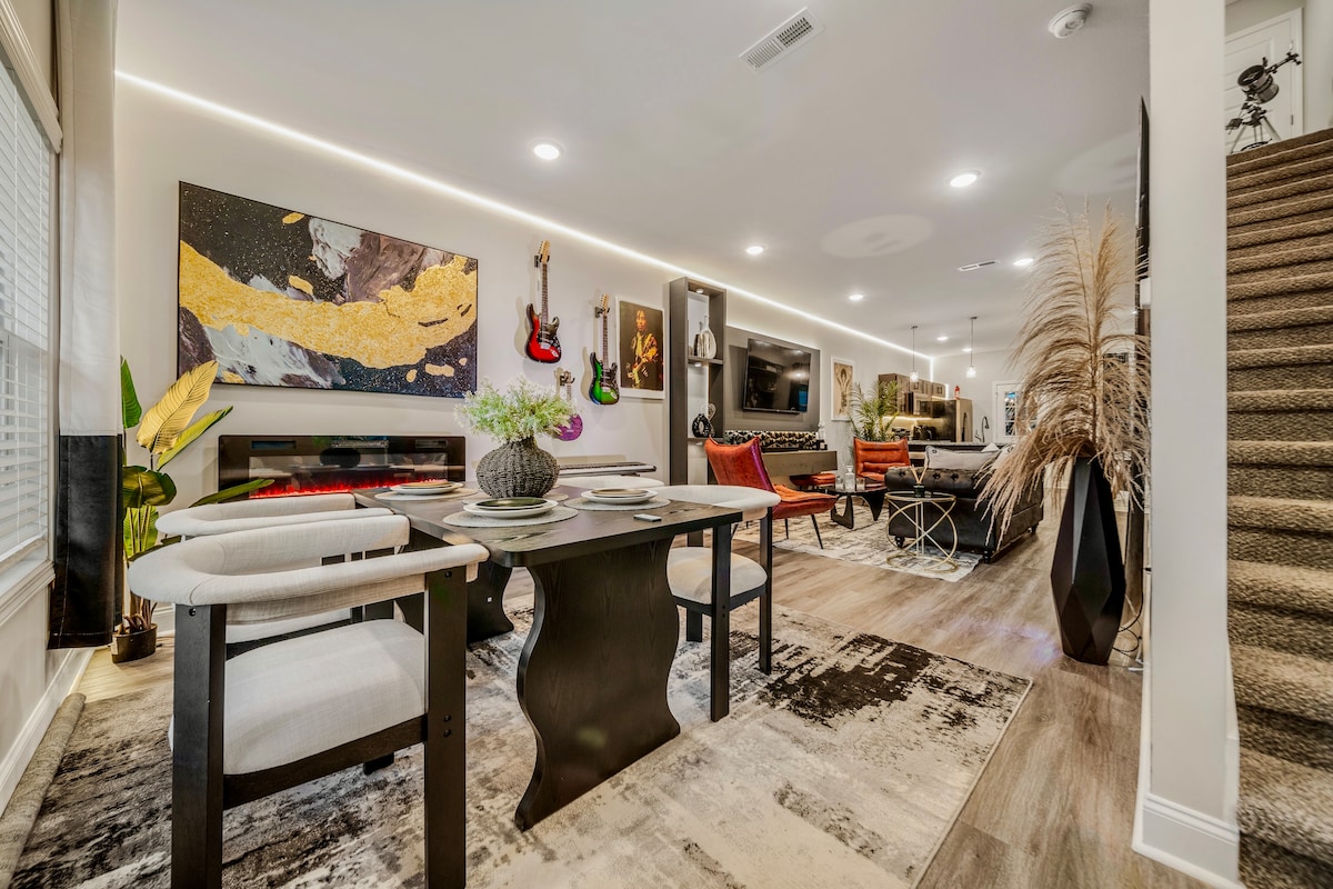 Beautifully renovated 5 bedroom 2.5 bathroom home located in the heart of Clarksville! Close to all of the amenities of Fort Campbell Blvd, Wilma Rudolph Blvd, and Tiny Town Rd. Easily could sleep 10 or more! This home is pet friendly, with stylish furnishings and super comfortable beds. Serene patio space with market lights that backs to trees. Air hockey and foosball table in the garage for your enjoyment!.