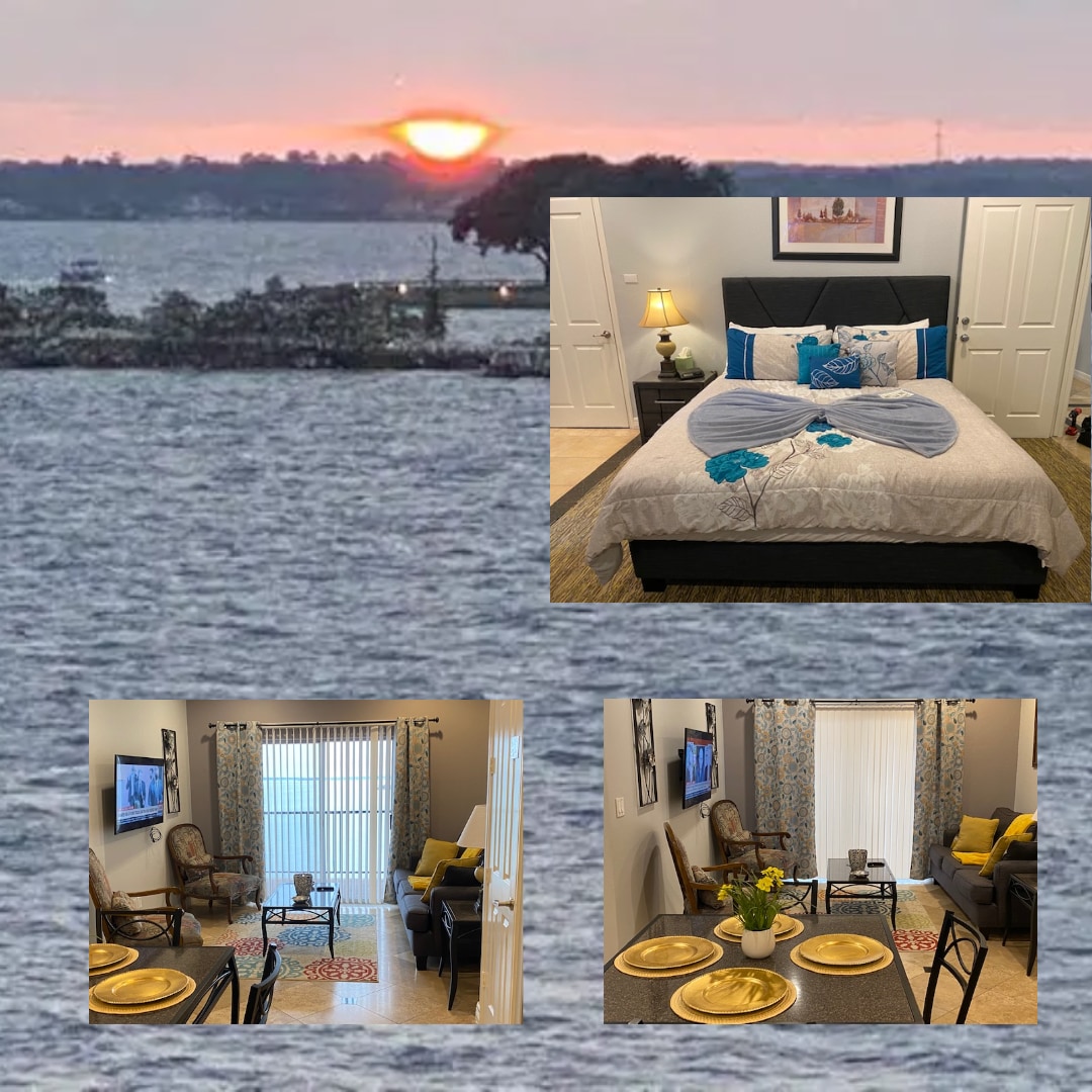 Welcome to Alluring Lakefront Condo — a stylishly furnished 2-bedroom, 2-bath retreat with direct lake views and a relaxing, resort-style feel. Whether you’re here for a weekend getaway, fishing trip, wedding, or extended escape, you’ll find everything you need for a comfortable and memorable stay — including a Complimentary Self-INFLATABLE PADDLEBOARD for you to enjoy on the lake. Just steps from the water and minutes from dining, shopping, and outdoor adventure.