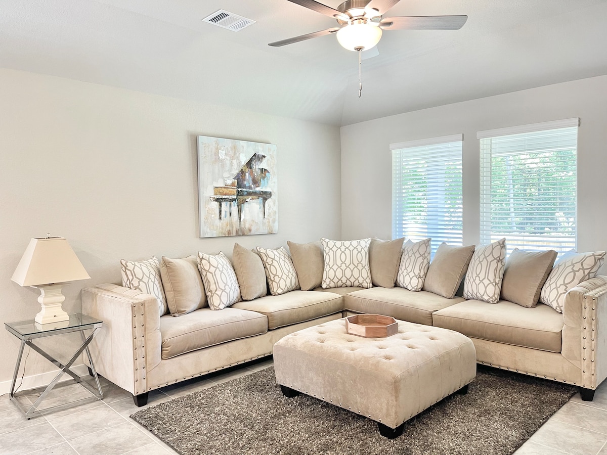 A gorgeous contemporary home with a Private Pool on a golf course community! This home provides an open floor plan, perfect for family get together. This home can comfortably host up to 14 guests! A single-story home with no stairs to worry about and plenty of parking! Home includes many amenities to keep everyone busy. Enjoy a drink by the pool or smores at the firepit, make memories with us!!