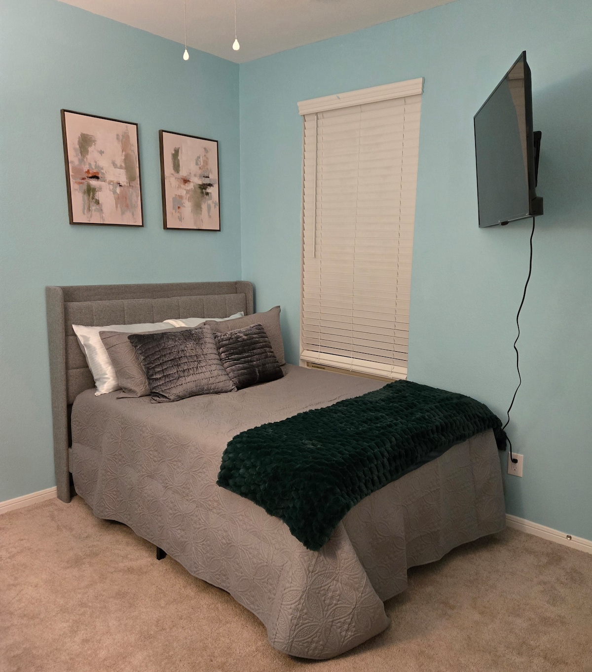 新房源标准双人床/55英寸Roku电视/办公桌/350mbps/迷你冰箱