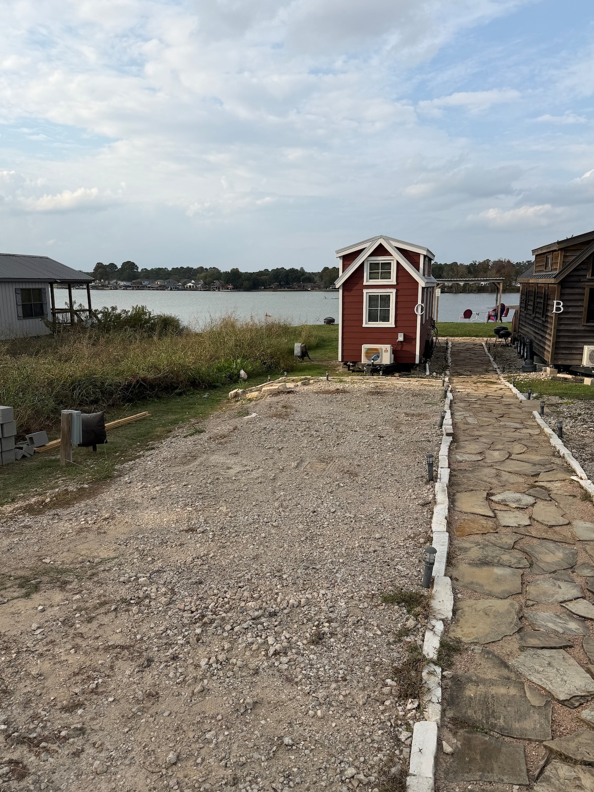 The simplicity & relaxation of our premium 399 Sq. Ft. tiny home is so refreshing and unique. This home sleeps four. It has a Queen size bed and a luxury pullout Queen sofa. The fully equipped kitchen is perfect to fix up your gourmet meals. The Bluebonnet is nestled beside our glistening 1/2 acre pond with ducks, fish and a fountain. A wooded area behind and open fields out front brings a nice breeze across the porch. Makes for a perfect place to enjoy the sunset & stars!