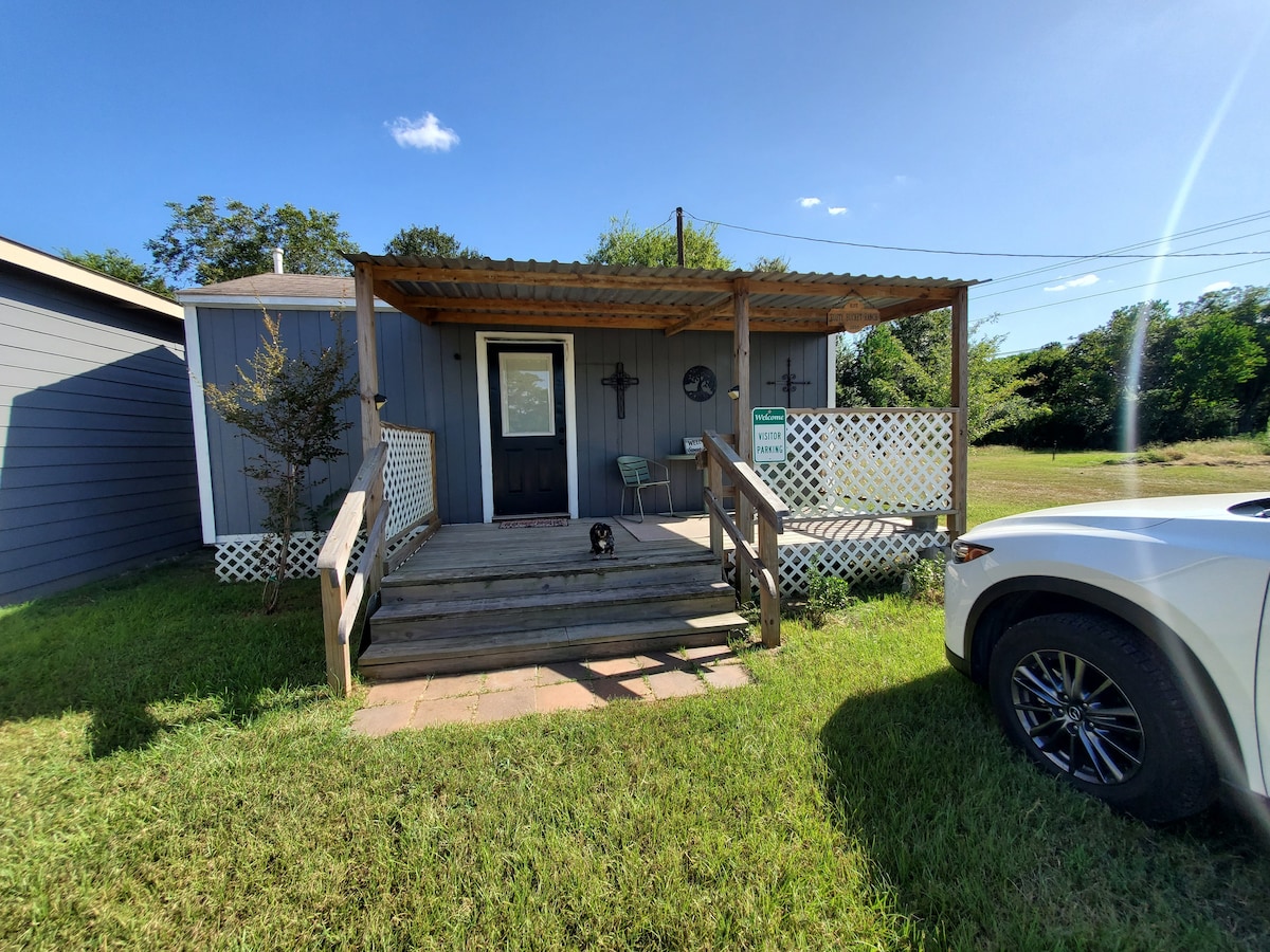 Cute “not so tiny" tiny house that is light, bright and especially clean. This cozy cottage is 75 feet away from the main house on our 6 acres of trees with a seasonal creek, birds, squirrels and deer. Nestled against the trees and backing the creek, enjoy the deck with your morning coffee or star gazing at night. Our country paradise is 10 minutes from city conveniences with plenty of restaurants and movie theaters. Enjoy Old Town Montgomery and The Woodlands, both just 15 minutes away.