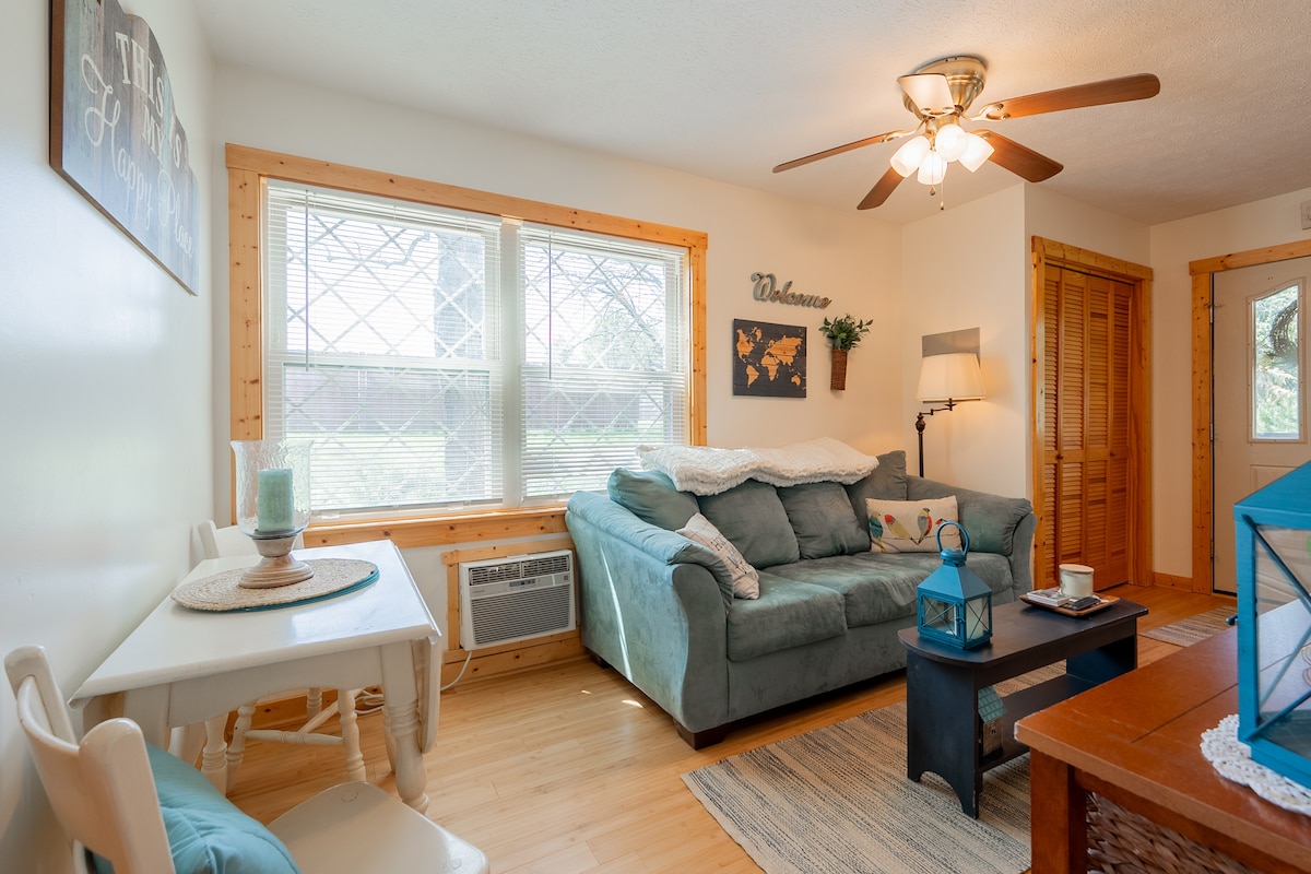 Escape to the peace & charm of the countryside in this cozy 1-bedroom, 1-bath cottage, perfect for a quiet retreat or romantic getaway. A pullout sofa provides extra sleeping space for guests. This property is pet-friendly. Whether you're hiking nearby trails or simply unwinding, this rural hideaway promises rest and relaxation. Maximum guests: 3. VT/Blacksburg - 13 miles RU/Radford - 14 miles Christiansburg - 10 miles Floyd - 13 miles FloydFest - 9 miles Roanoke, VA - 26 miles