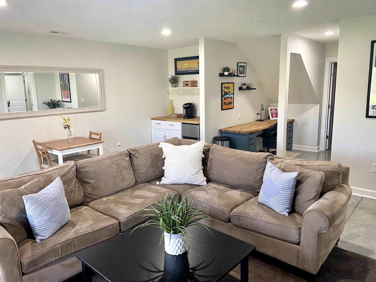 Welcome to our beautifully remodeled apartment, a harmonious blend of modern, minimalistic, and high-end design. Created by the artistic hands of an architect drafter, this home embodies an earthy, all-natural aesthetic with a focus on functionality. A three-year renovation project has transformed this space into a haven of comfort and ease, and sustainability. Situated in the basement of our home, yet completely private with a separate entrance, just a few minutes from downtown.