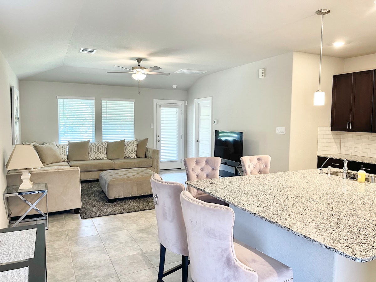 Casa Granada is the perfect getaway home with this modern, open, and cozy design! Our floor to ceiling sliding glass doors, reveal our large, private backyard. Making this home, truly one of a kind! Only minutes away from The Woodlands and shops on Market street. Enjoy a night in with our Philips hue lights to set the perfect mood. You can also work remotely or hit the home gym! WIFI/TV/PARKING/CENTRAL AC/WASHER/DRYER/PATIO/GYM **For a grill: must be requested 24 hours before check in