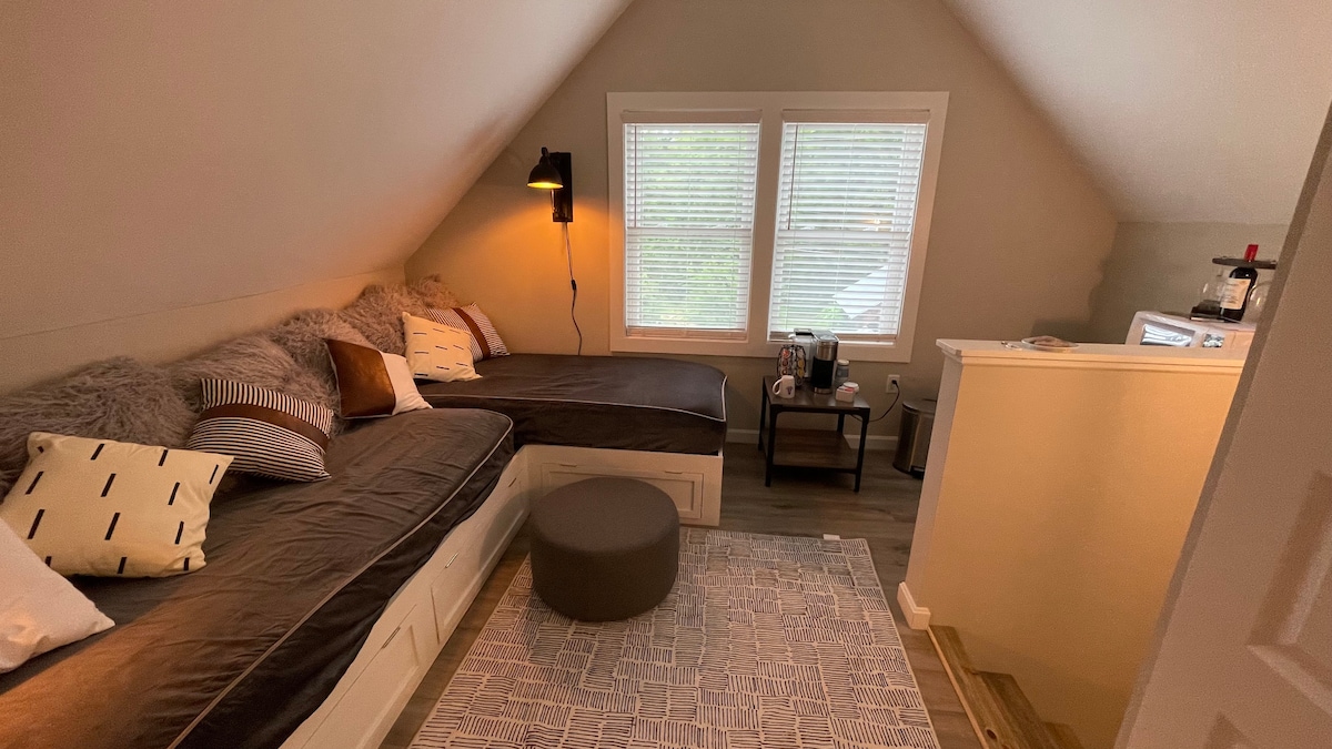 宽敞高档阁楼公寓,卧室配备标准双人床