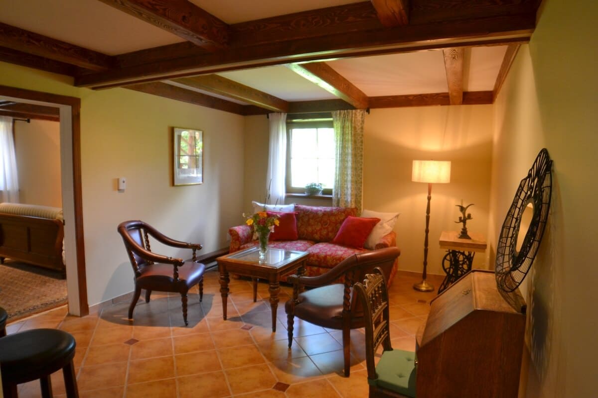 Why rent a room when you can enjoy being pampered & secure in a suite at the Phineas Swann Bed and Breakfast? Enjoy a free gourmet breakfast, outdoor hot tub, king-sized bed in one bedroom, a queen in the other, complimentary sodas, snacks & coffee or tea, a warm fireplace & private bathroom! And unlike all the other AirBnB listings you're looking at, we're inspected, licensed, secure and safe!