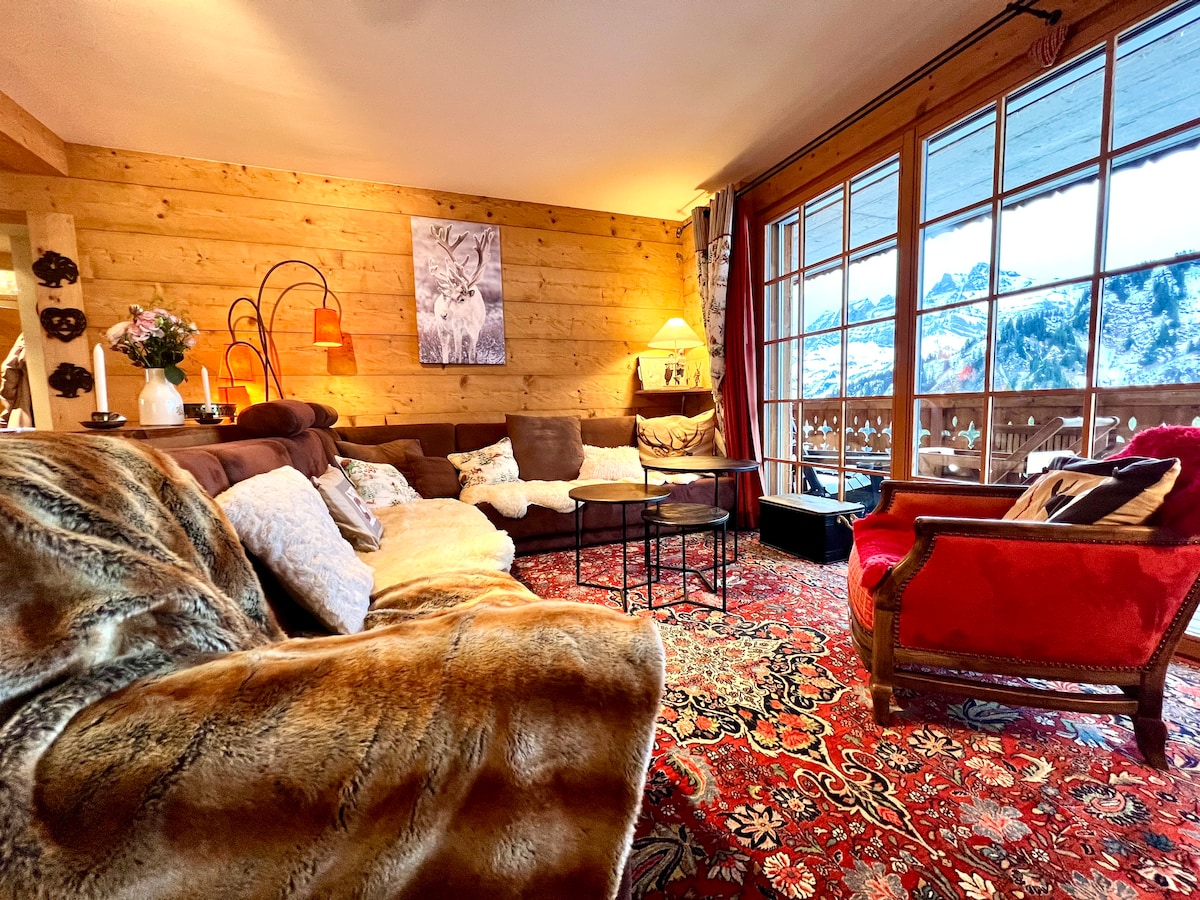 Superbe appartement au dernier étage d'un magnifique chalet en plein centre du village de Champéry en Valais. L'appartement est composé d'un grand salon avec cheminée, coin à manger, bar et cuisine (îlot central), de 3 chambres à coucher avec salles de bain en suite. Idéal pour 6, il peut aussi accueillir des enfants dans la mezzanine. Et il peut aussi être couplé avec un second appartement un étage plus bas pour 4 personnes. Idéalement situé au centre du village, il est à 100m du Palladium