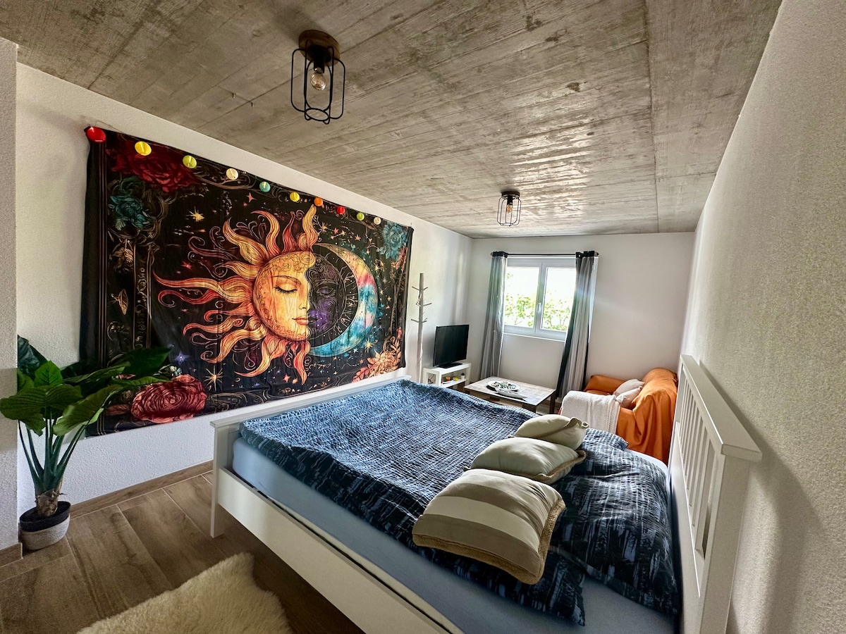 Depuis 2007 je propose le studio « ChezlaCotch » entre lac et montagnes, à ce studio s’ajoute (depuis avril 2024) une chambre pouvant accueillir deux personnes. Le deux-pièces est séparé par un couloir commun que nous utilisons uniquement pour accéder à l’économat. Il n’est pas possible de louer seulement la chambre car celle-ci est sans sanitaire. Vous l’avez donc comprit la salle de bains est commune. Pour y accéder vous devez passer dans le “studio”, idéal pour de bons amis ou famille.