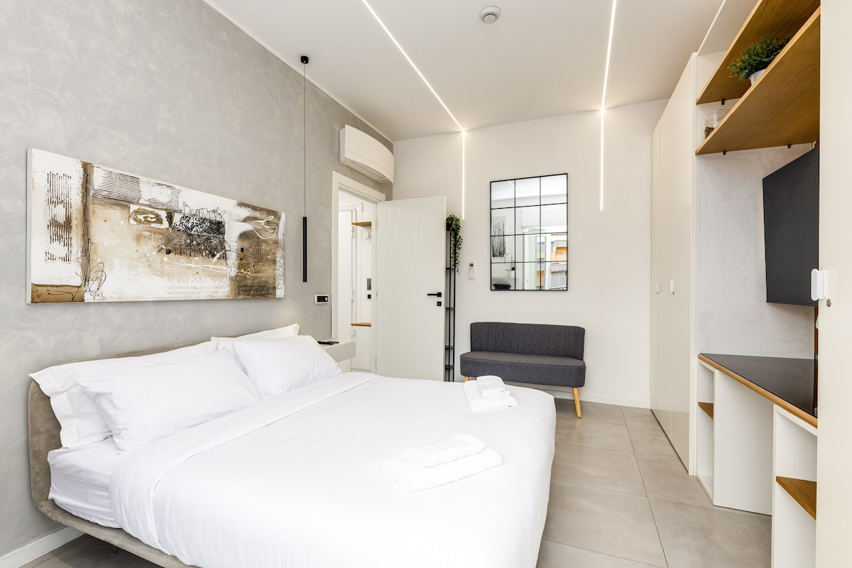 Nazionale Skyview is an exclusive luxury penthouse in the heart of Rome, located on the top floor of an elegant 19th-century building. Featuring a panoramic terrace and a private Spa, it offers a unique experience combining comfort, relaxation and advanced technology. Its strategic location, near the Teatro dell’Opera, Repubblica subway (line A), and just five minutes from Termini Station, makes it easy to explore the historic center , enjoying a luxury retreat above the rooftops of Rome.