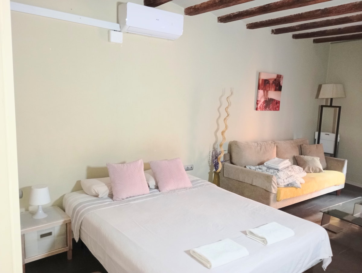 CONSTA DE UNA CAMA DE MATRIMONIO Y UN SOFA CAMA DOBLE. LA CAPACIDAD TOTAL DE ESTE APARTAMENTO SERIA PARA 3 PAX. Este encantador loft es el refugio perfecto para aquellos que buscan una estancia cómoda, funcional y estilosa en la ciudad. Con un diseño abierto y minimalista, conservando paredes tradicionales. El espacio ha sido cuidadosamente decorado para ofrecer la máxima comodidad y estilo, aprovechando al máximo su tamaño compacto. Fiestas del barrio Poble Sec durante 18 al 27 de Julio.