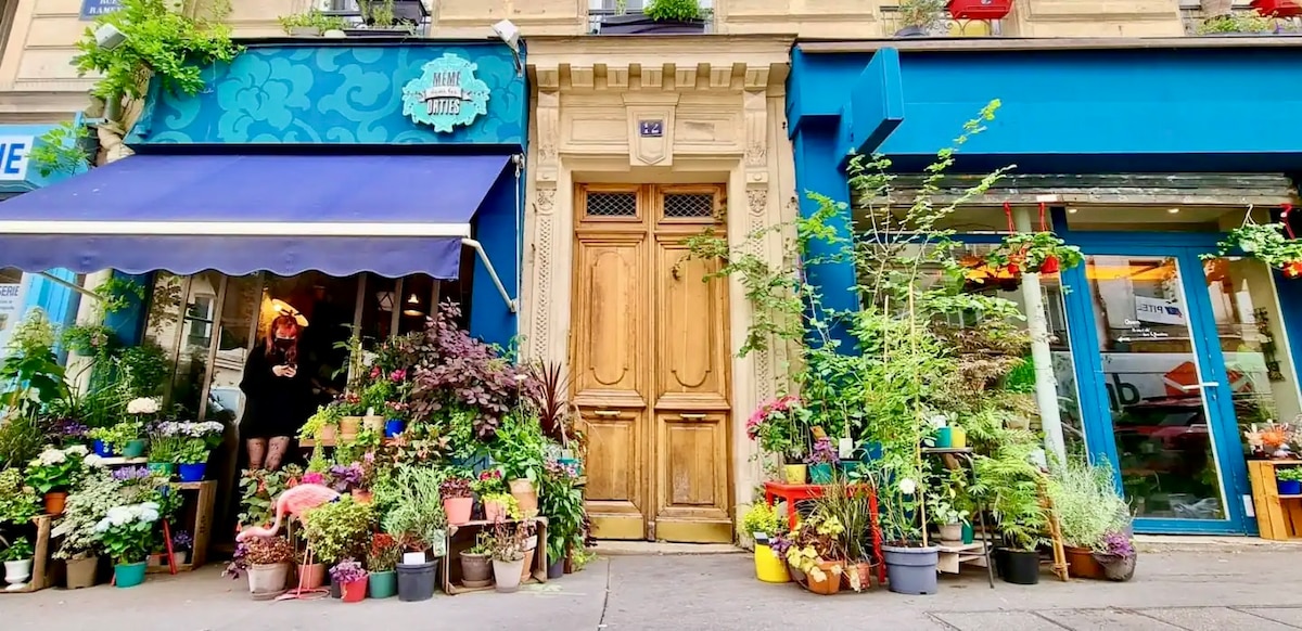 Peaceful and private hideout at the foothill of Montmartre. This unique appartement has been home and inspiration for world famous painters, poets and film makers. Equipped with: cozy Queen-size bed, with all natural fabrics, kitchen corner, a bathroom and WC. On the small balcony you can eat or read outside and look at Paris' roofs. The mural painting is from one of Latin America’s greatest masters, Guillermo Olguin. The gifted interior designer is also your co host, Victoria Senoret.