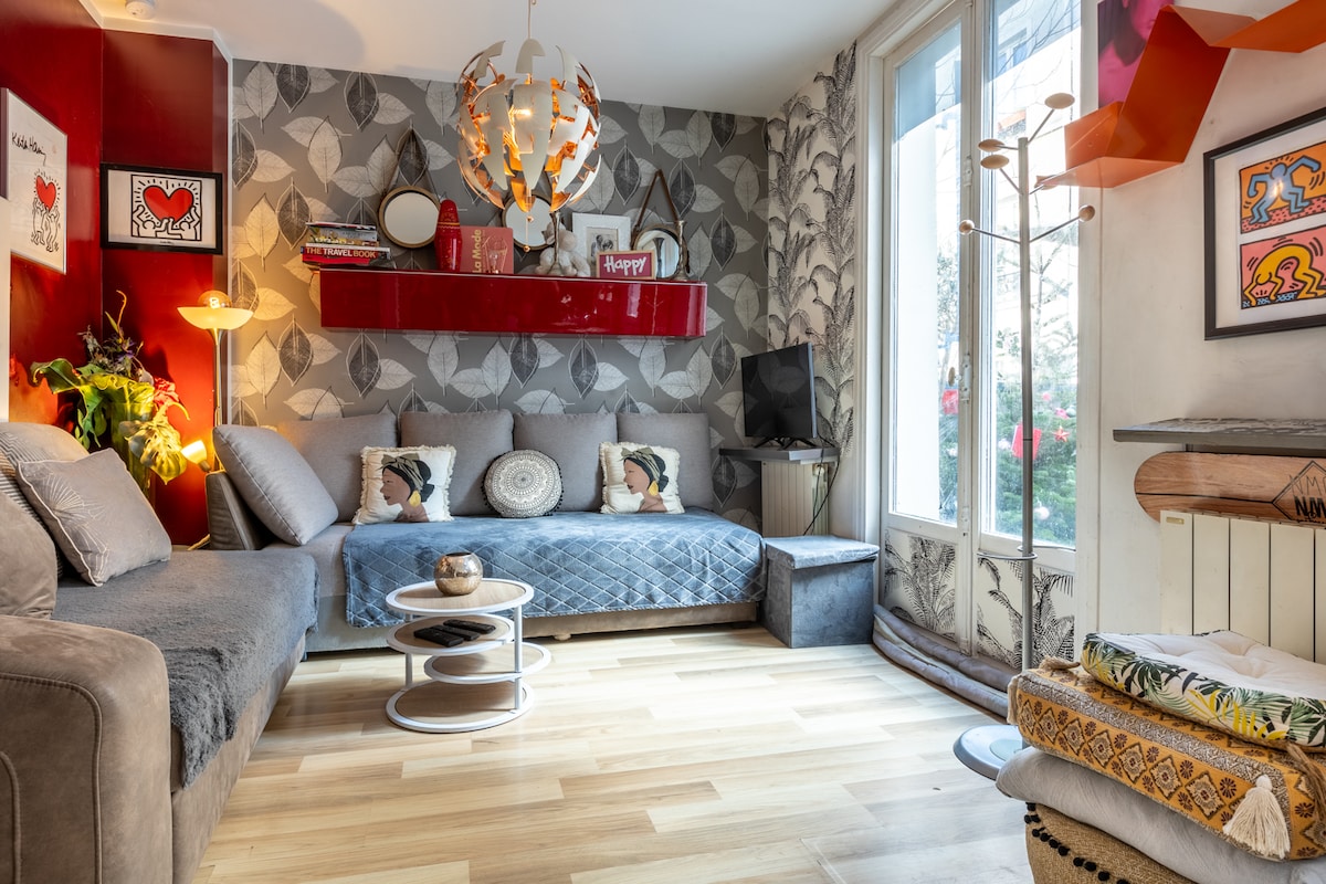 Wake up to a glimpse of the Eiffel Tower from the heights of eastern Paris. This vibrant artists’ district offers romantic parks, global cuisine, authenticity of parisian lifestyle (not a touristy area), and buzzing bars — just 2 minutes from the metro. Welcome to Belleville Townhouse — a thoughtfully designed 3-bedroom home ideal for short group stays, combining Parisian character, modern comfort, and everything you need just outside your door.