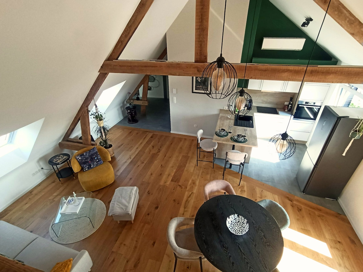 This charming attic apartment nestled in the heart of Virton, capital of Gaume offers a cozy and bright space and superb views of the surrounding area. Ideal for a relaxing getaway alone or as a couple. LGBT friendly. Discount available for stays of 8 nights or more (extra cost for 3rd and 4th additional travelers if cancelled) Authenticity and modern comfort. One bedroom with a double bed, a modern bathroom, a reading area and a mezzanine with 2 extra beds. 3rd floor, no elevator.